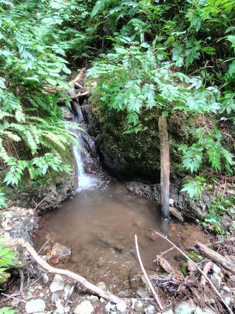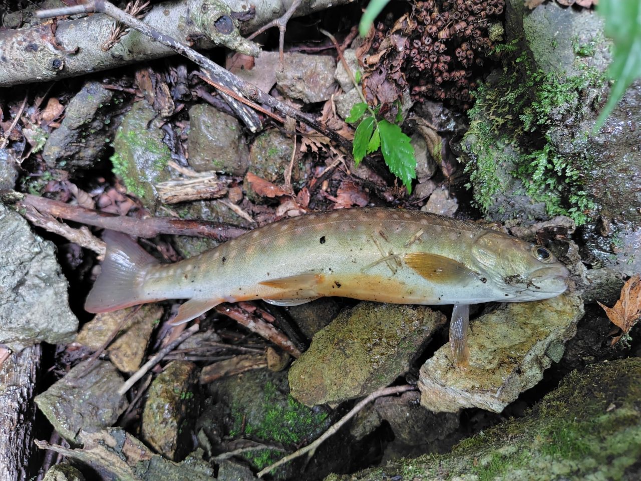 先日の滝上を釣査。落ち込み毎に良型のイワナさんが棲み着いていました!