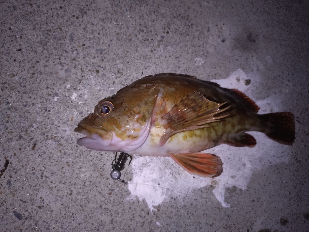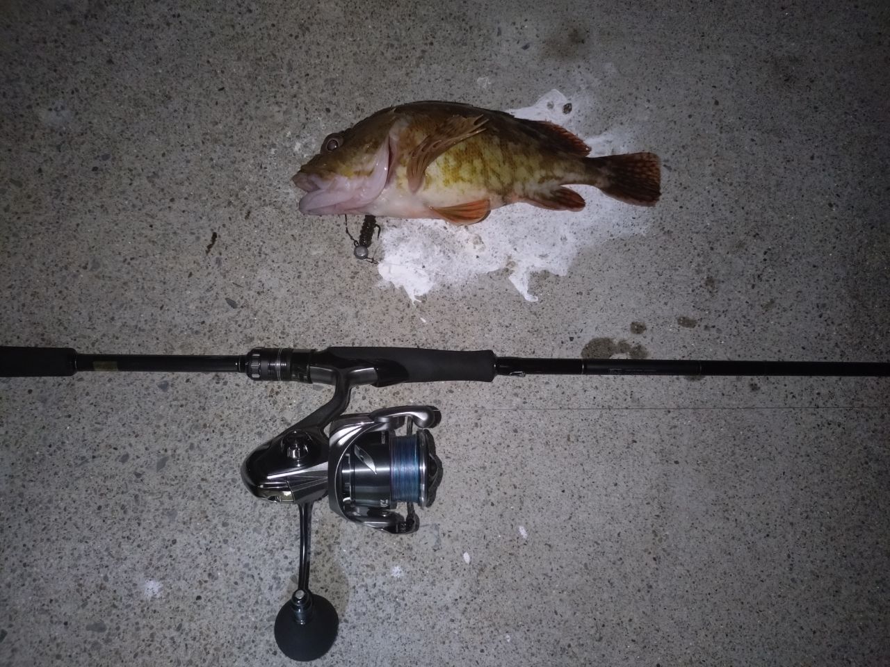 初めて丘からカサゴ釣りました。