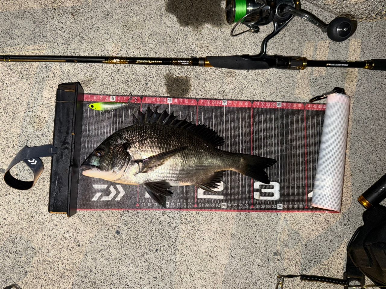 シーバス狙いにも関わらず、またしてもクロダイを釣り上げてしまった。