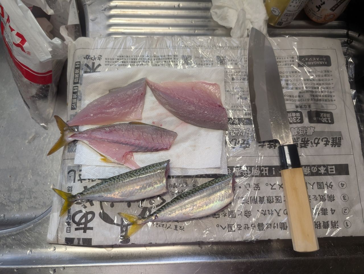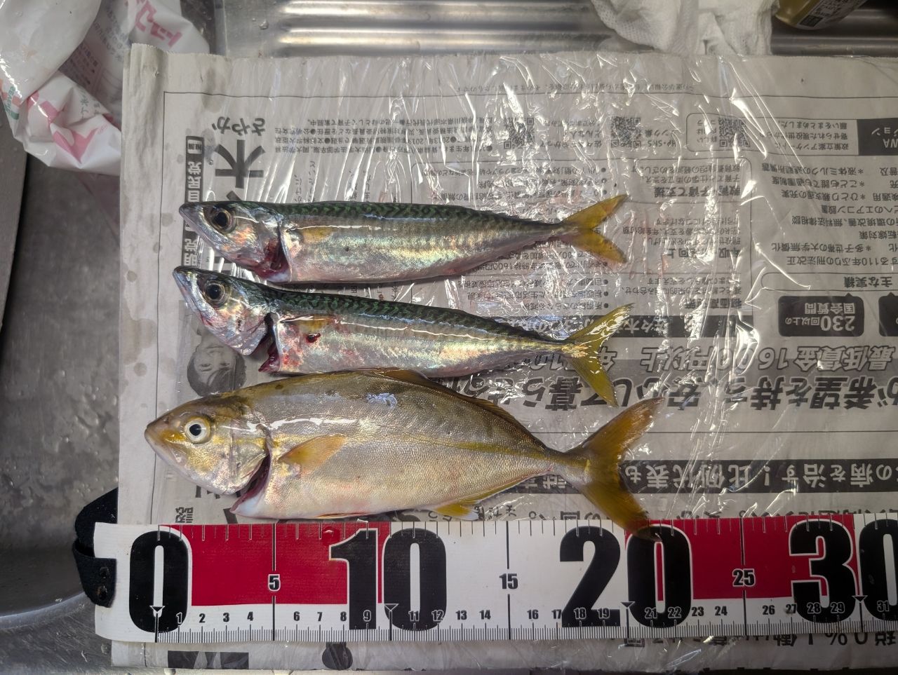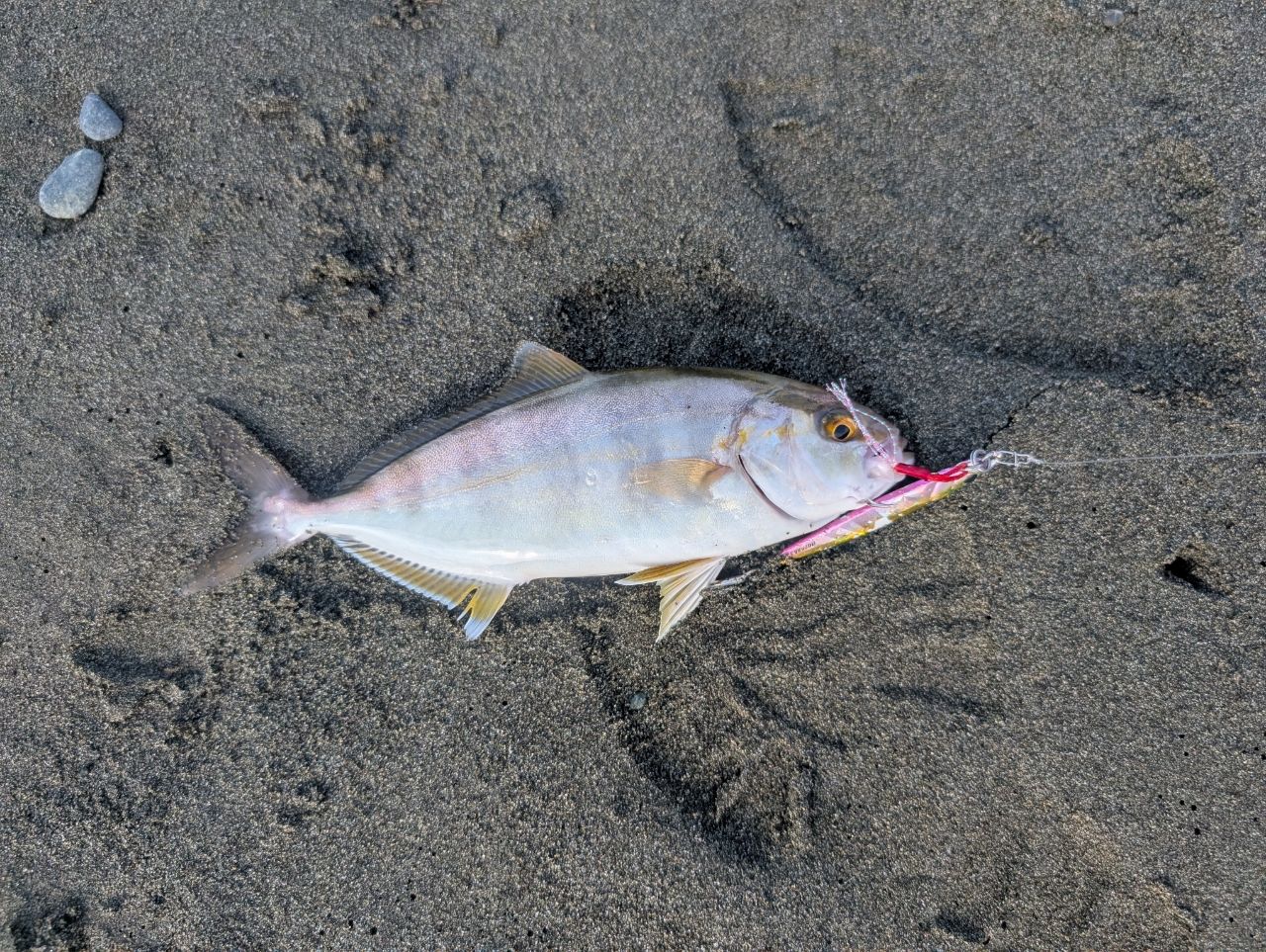 朝イチ、ジグサビキでサバ2本、時間空いて波打ち際でショゴ1匹。