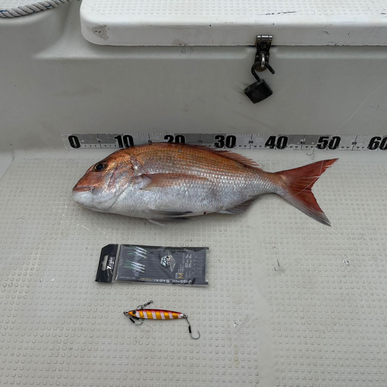 RサーディンTG80g(ZGアカキン)+ジギングサビキMの組み合わせで着底と同時にHITして52㌢の真鯛ゲット‼️