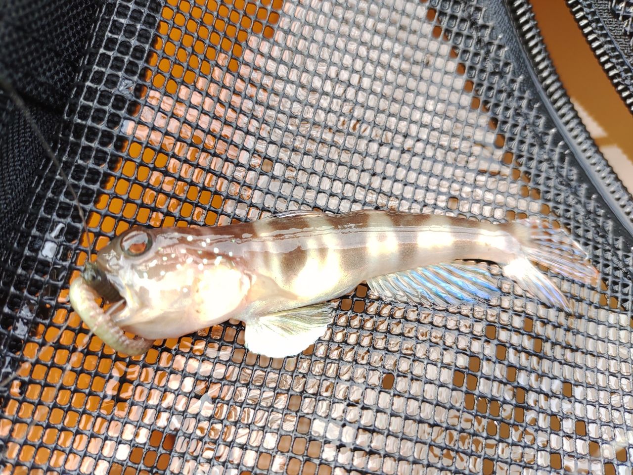 キス釣りでイソメをチョンチョン探ってると、下道として釣れました。