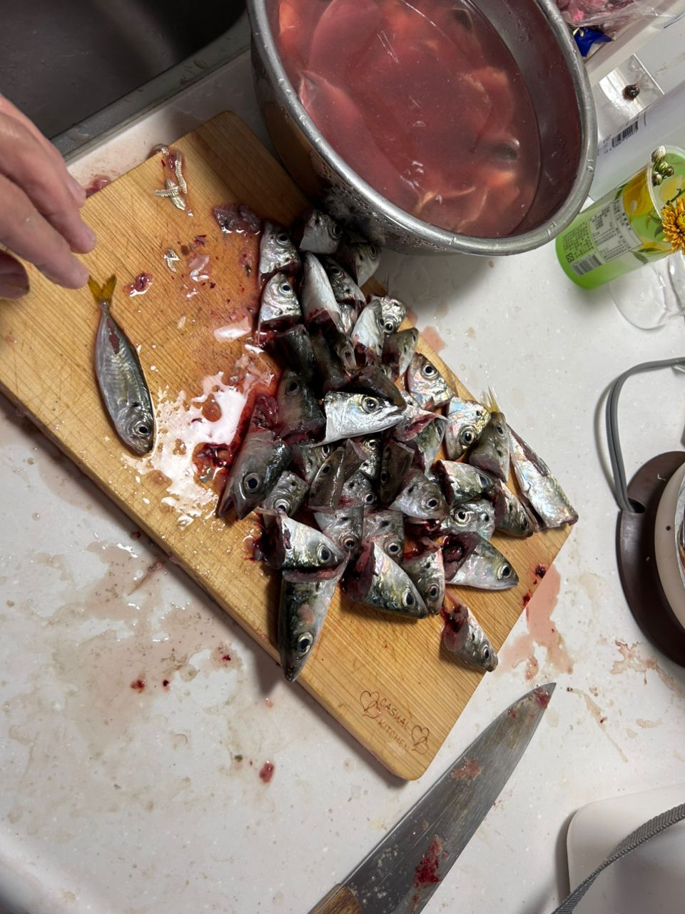 アジ サバ イワシ が釣れました。捌いてる途中の写真です