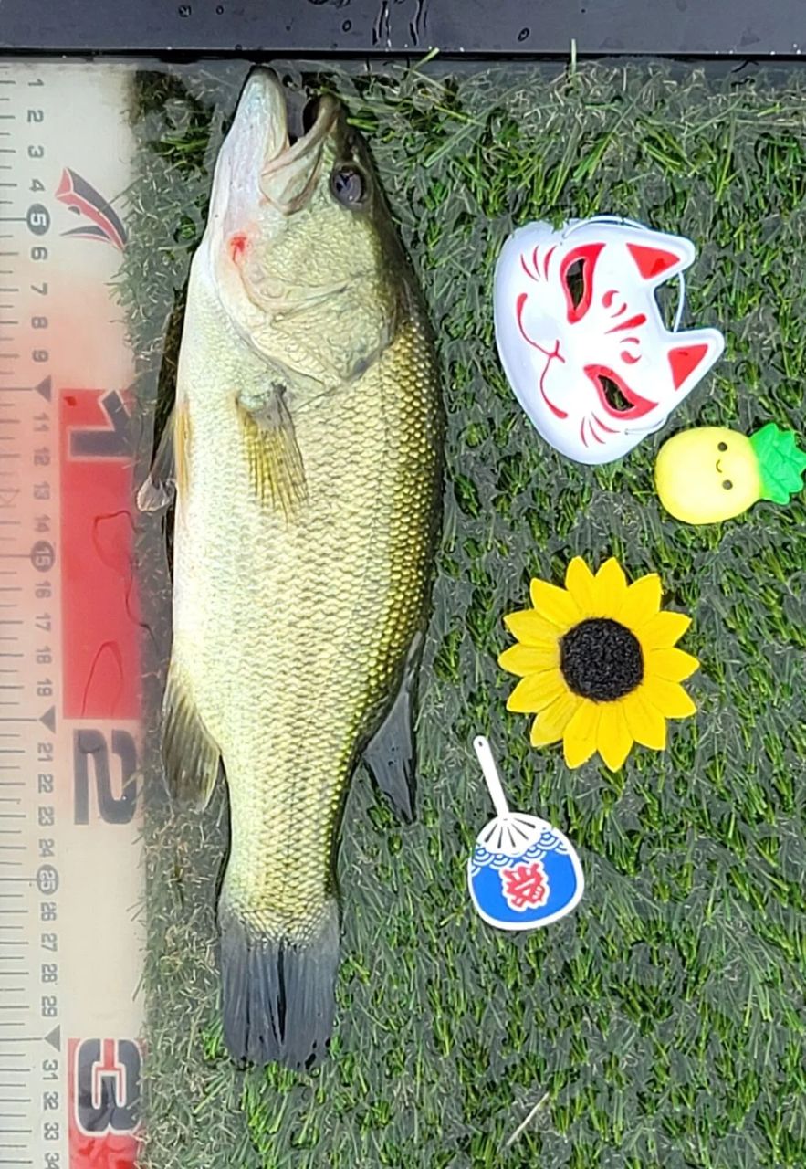 キャストすること数分、一本目とは違い強烈な引きではないが姿を見せたのは少し小ぶりなバスでした🤗