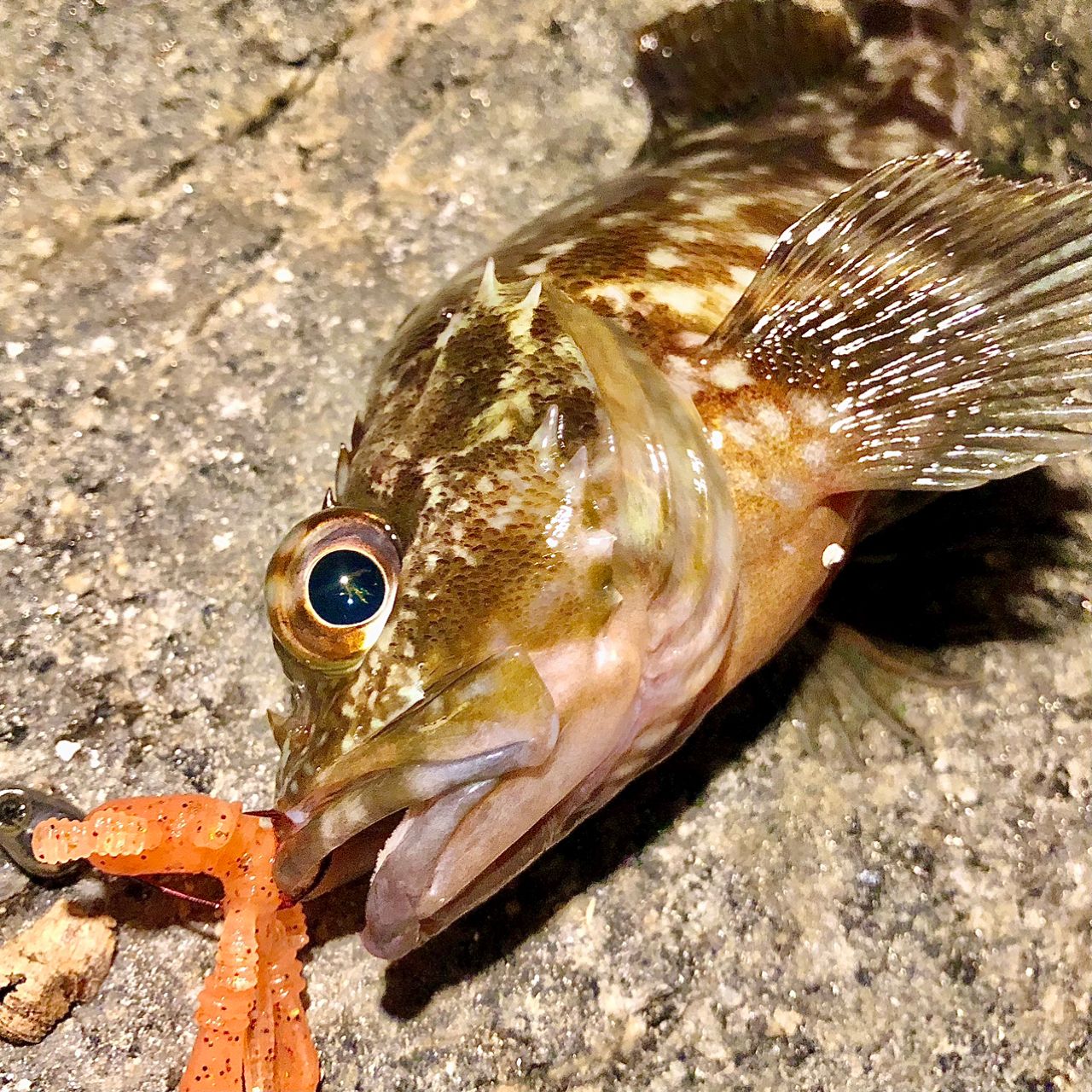 カサゴつ抜けしたあたりで広範囲にただ巻きズル引きチヌ狙いに変更