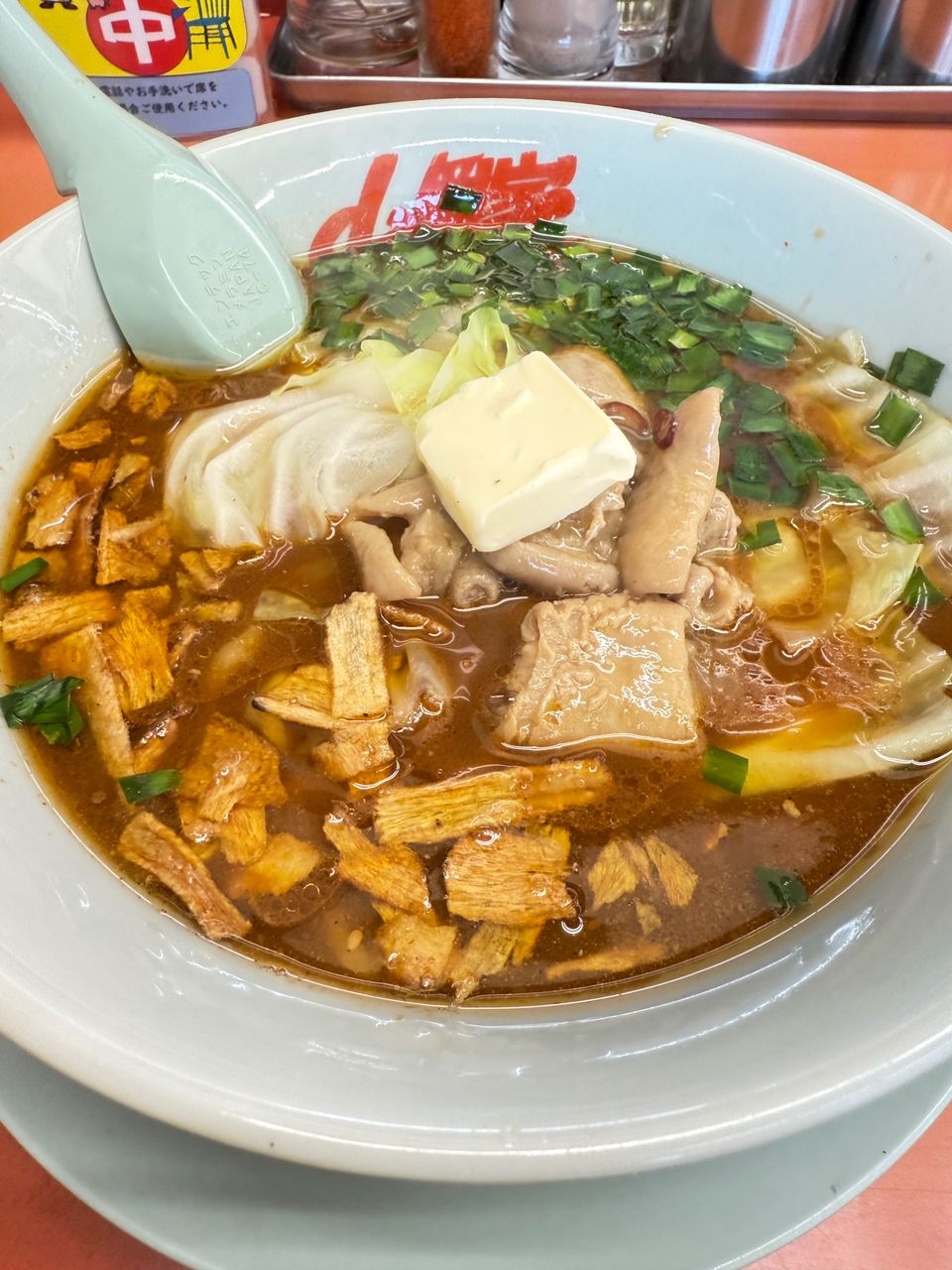 帰りは釣れたご褒美に山岡家の期間限定のスタミナモツラーメン。朝からニンニクで口臭レベルMAX。