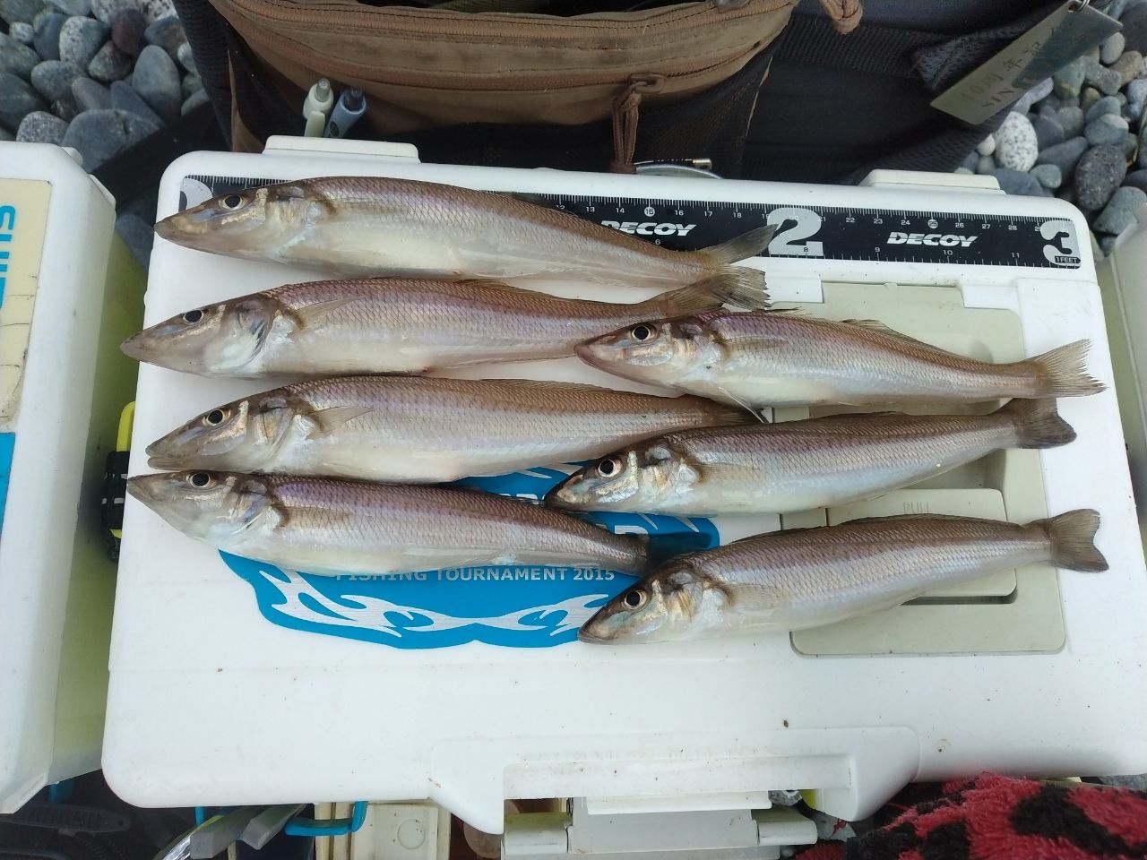 昨日までの雨と波で濁りがあって釣れないと思ってましたが、二宮は少し波はあるけどあまり影響が無くて5色から3色位で釣れました。