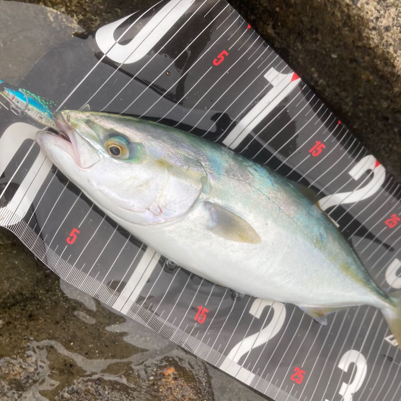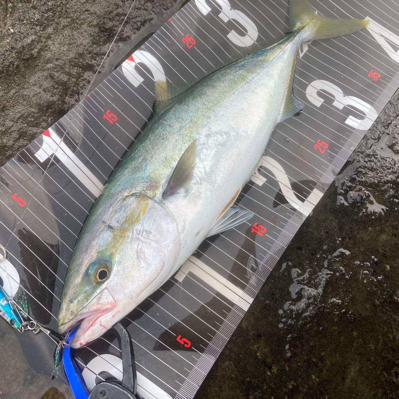 その後潮止まりでアタリが途絶えたが、潮の引き始めにブレードで再びガツン!さっきより更に引きが強くラインが擦れてヒヤヒヤしたが何とかキャッチ!41cmでギリイナダ!