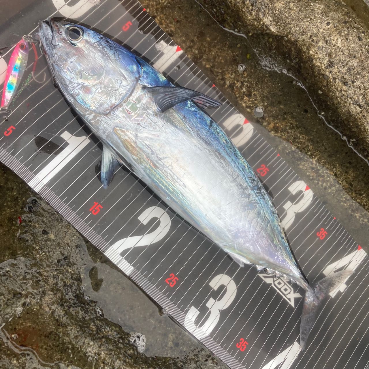 その後1匹バラしたあと、ジグをゆっくり目にジャークしているとガツン。ブルブルするのでソウダなのは分かったが、引きが明らかに強い。無事キャッチして大きなソウダだなって思ったらヒラソウダ!10年以上振りぐらいに釣った嬉しい外道に満足して納竿。