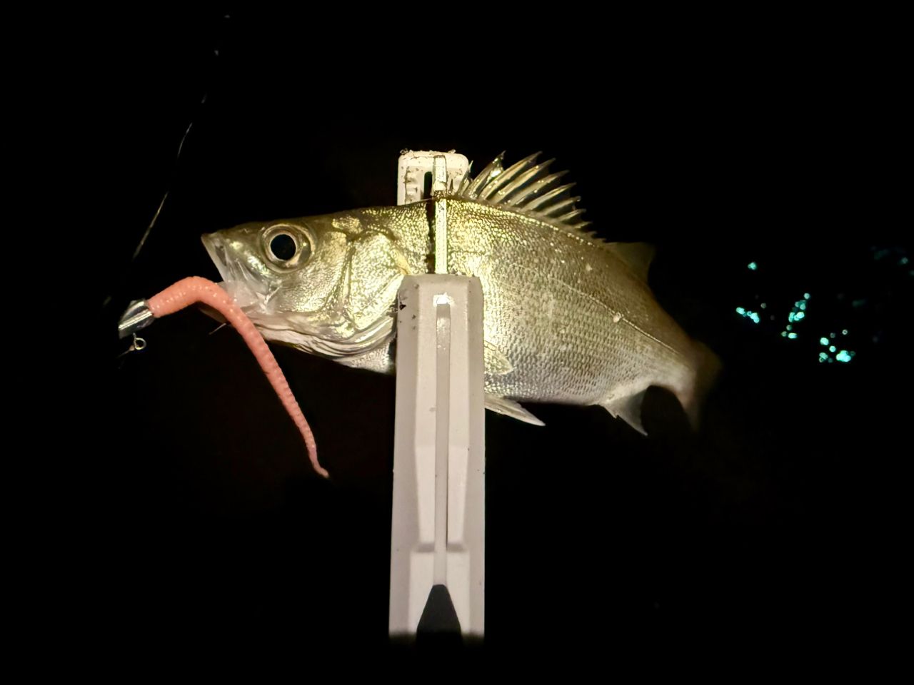 水面パシャパシャしてるので0.6gジグヘッドでレンジ上げてみると、掛かってきたのは極小セイゴ、しかもヒラも混じってる。