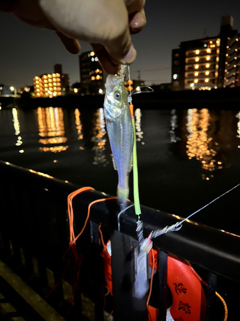 初(チビ)ウナギ1匹、豆アジのようなシーバス2匹。全てリリース。大きく育つことを期待。