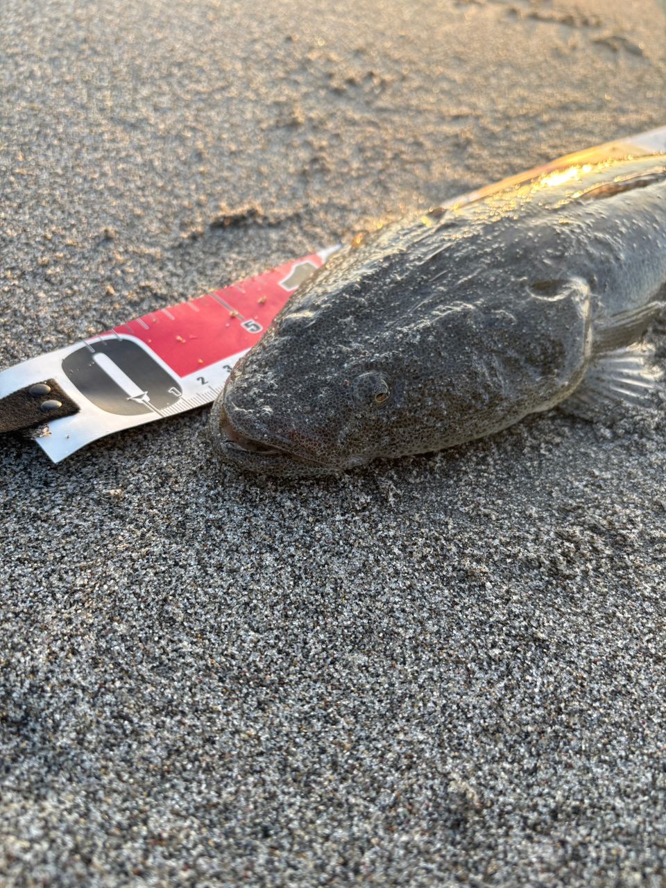 見つけた離岸流に絶対いると思って粘ってねばって、ワームの色変え一発目。やっぱ、マゴチの人ファイトは、素晴らしい。