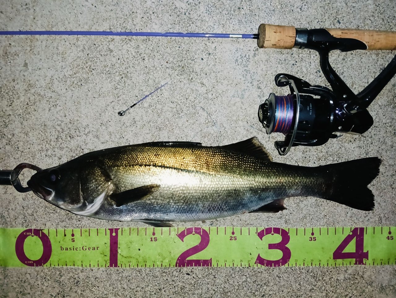 ライトゲームにて44cmシーバスx1𓆛納竿🎣そして、お分かりいただけただろうか・・・。画面中央の折れたバズり鱒の先端に注目orz_(:3」∠)_ファイト中にボッキり逝った〜。折レルド釣具ですわ〜〜…。修理したろ🎣