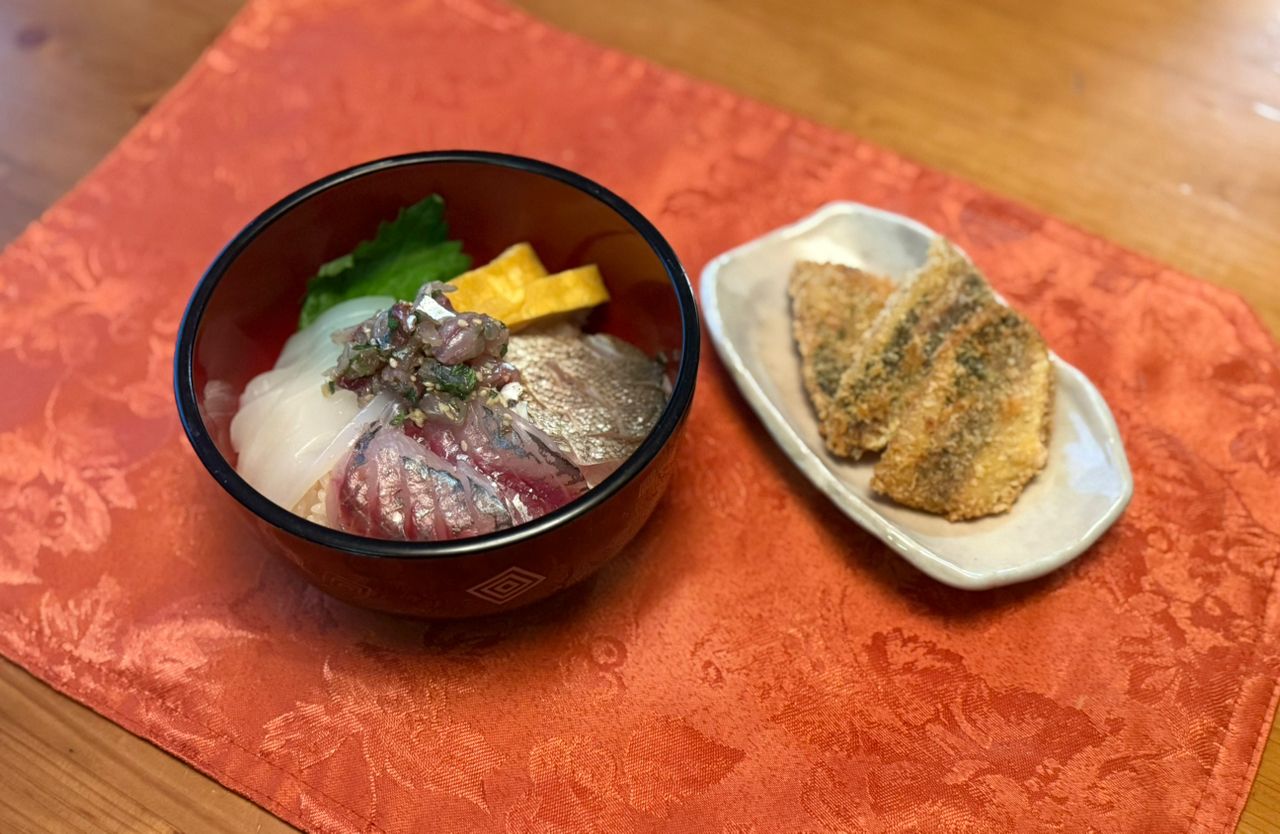 夜は海鮮丼とアジフライと