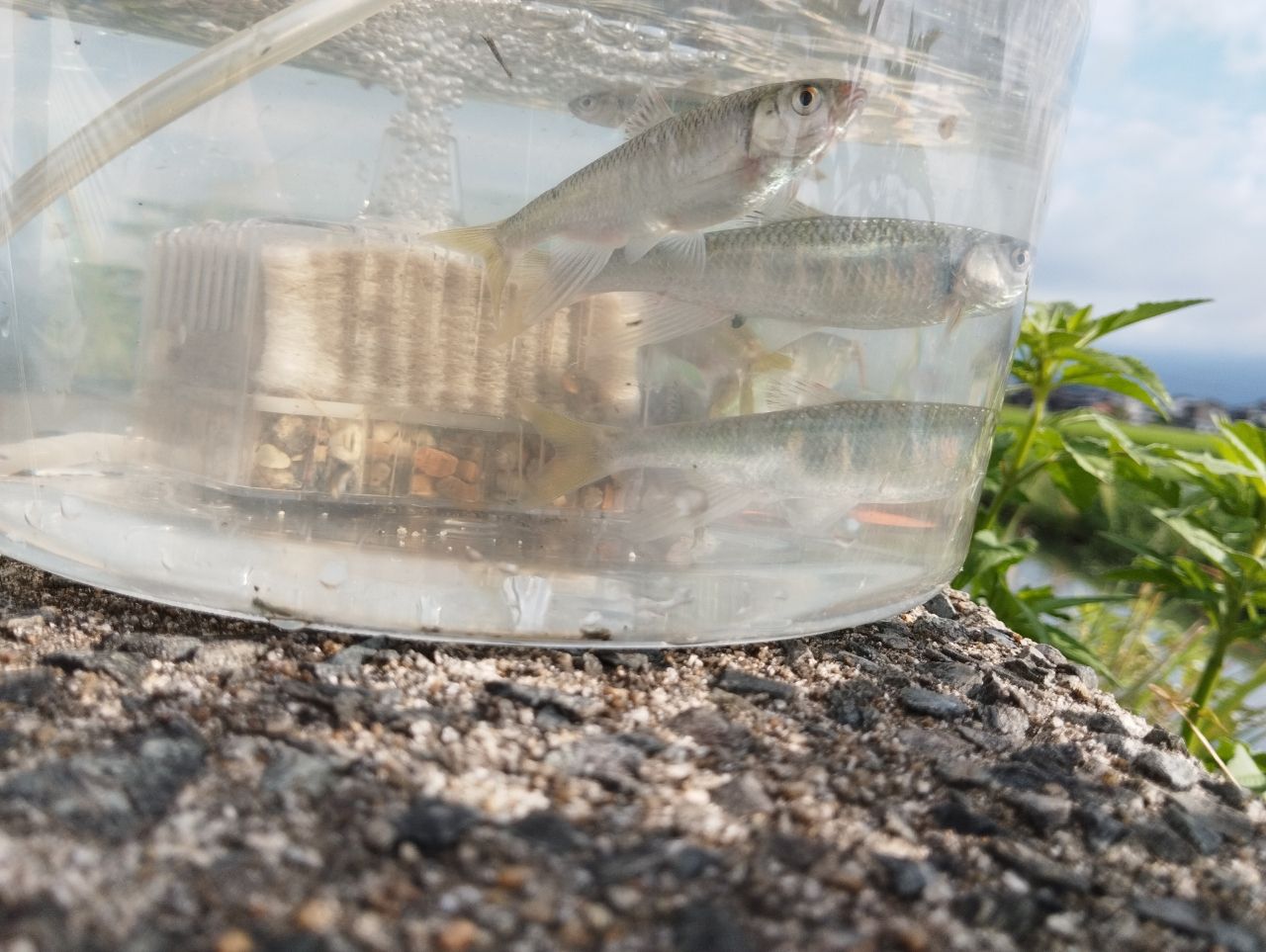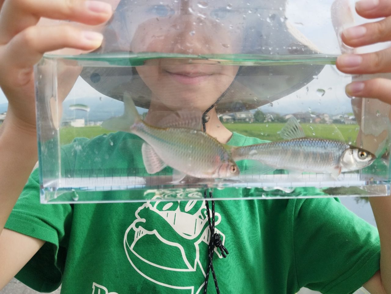 そしてお盆ん休み最終日になんとか小さいながら子供が探し求めていたカマツカが!自宅に持ち帰り水合わせして3つ目の小さい淡水水槽へ水合わせして終了!