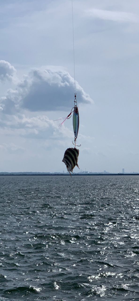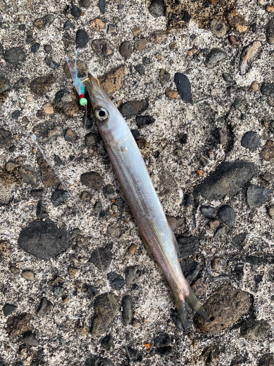 投げサビキのウキはビュウビュウと押し戻され、ジグサビキも5gやら10gやらでは全く強風に逆らえず、20gをやっと飛ばしたと思えばまさかのサンバソウが喰らいつき…