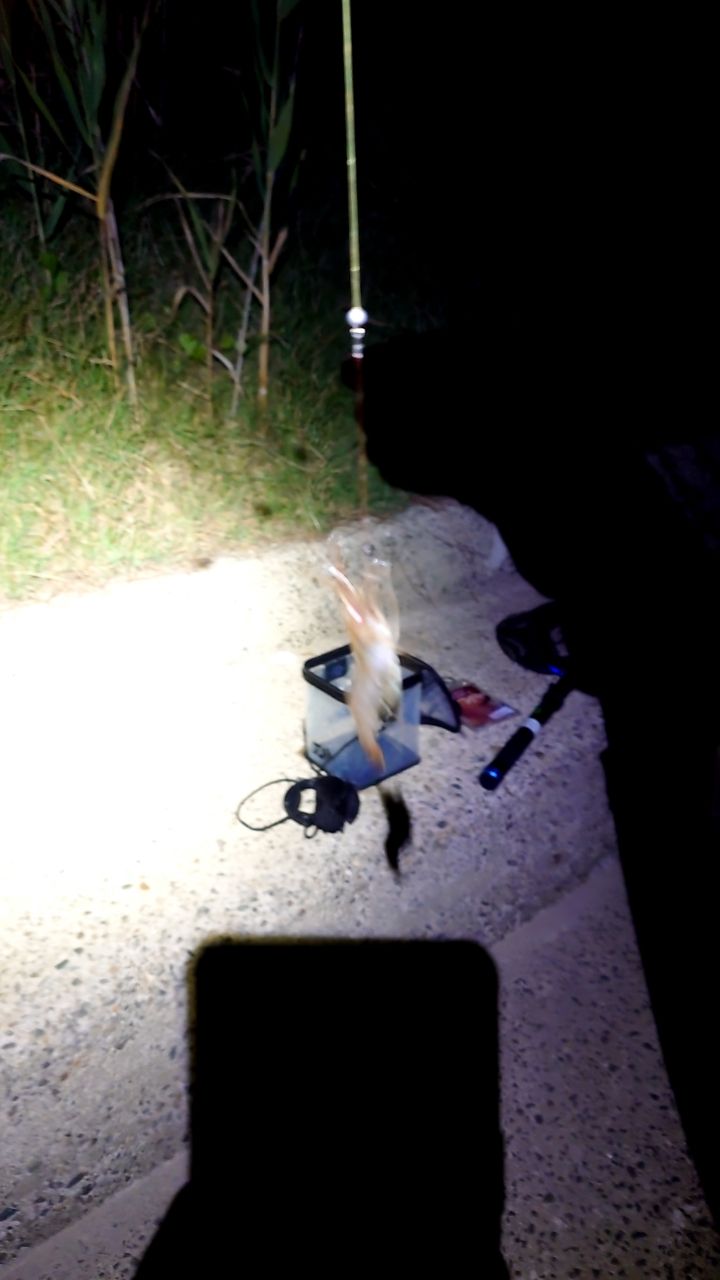 日中は物陰にいる奴らも夜はウロウロしてるようなので赤ライトで探して目の前に生ハムをたらす