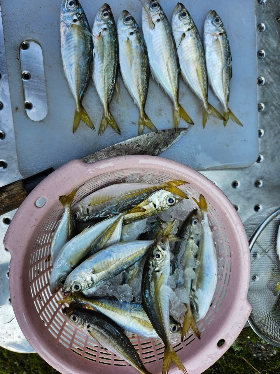 その後ポツリポツリとアジが釣れ続けいつの間にか30匹オーバー 途中猫さまにアジ泥棒されながら2時間ほどサビキ釣りして納竿となりました\(^_^)/