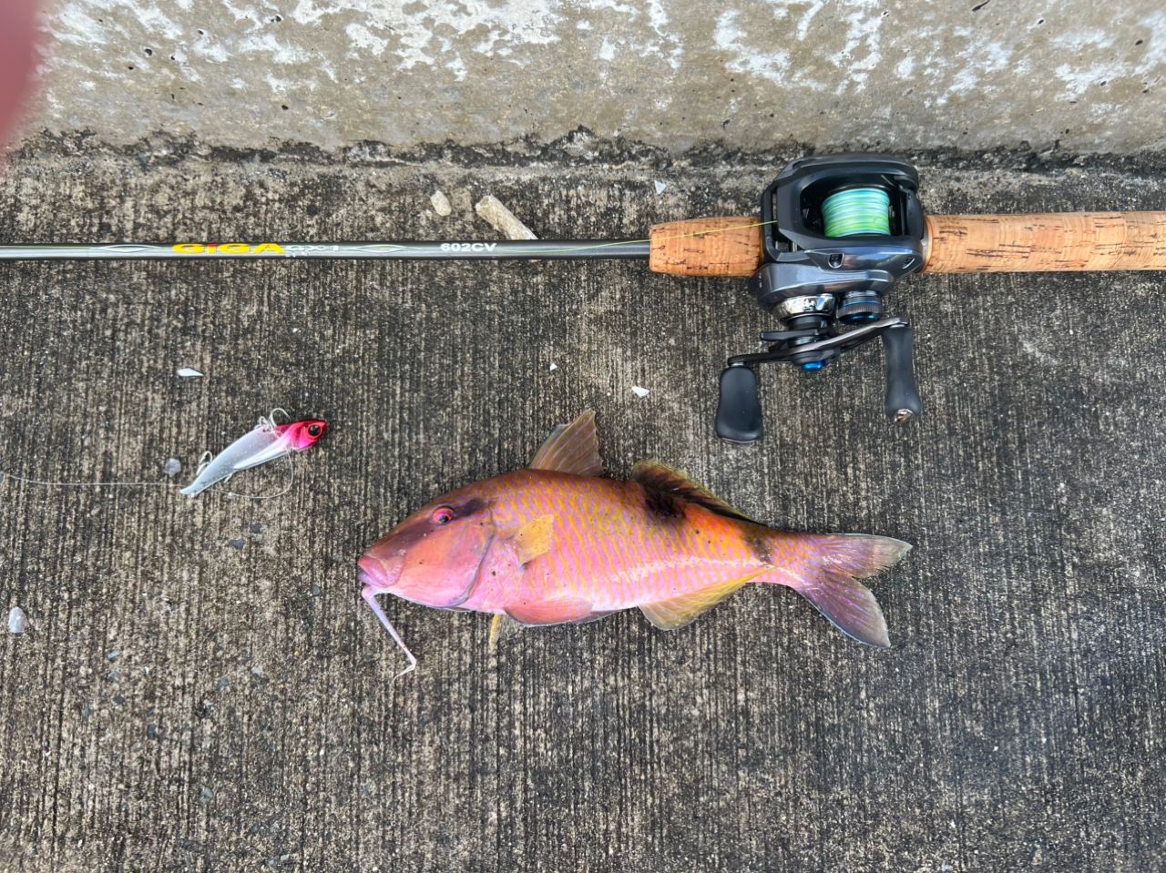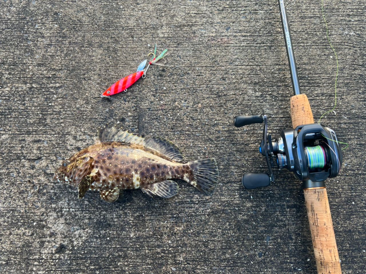 オカッパリ第二弾。ジギングでカンモンハタ、バイブでオジサン。