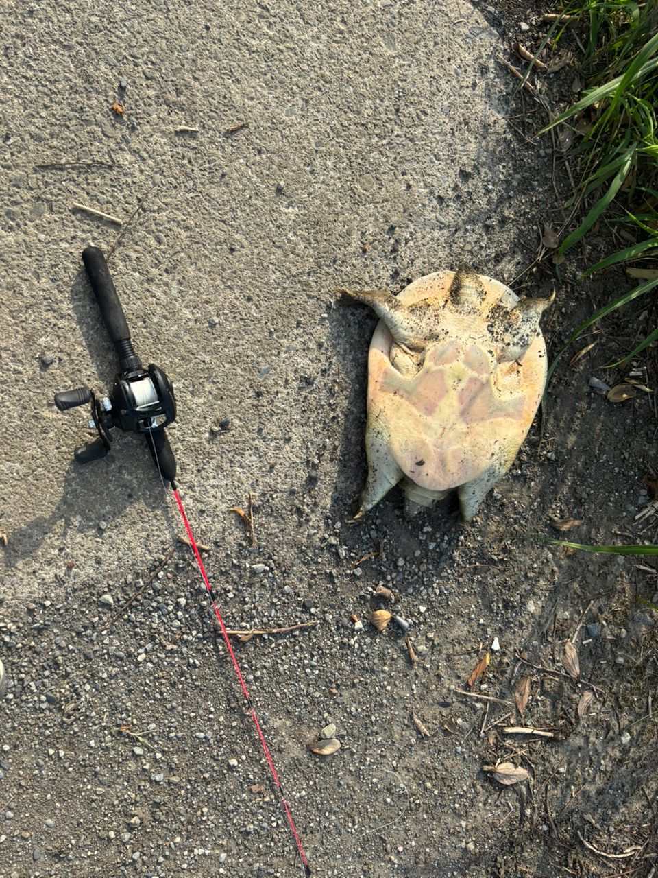 こんなタックルで大きいすっぽんを釣れるとは思わなかった。