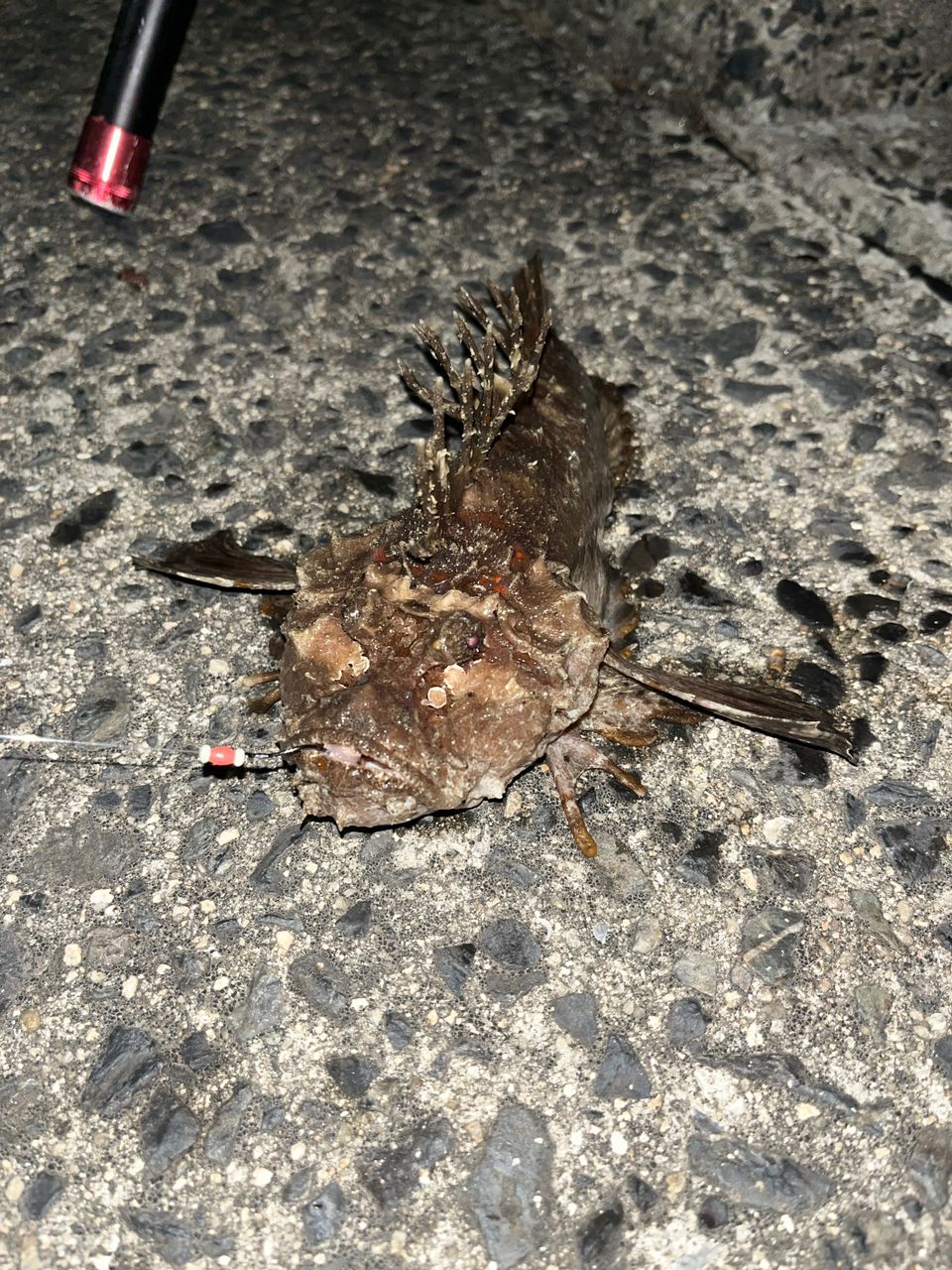 オニオコゼ1匹目は海藻かと思ったぐらい重かったけど姿見てびっくり!むちゃくちゃでかくて迫力満点!!