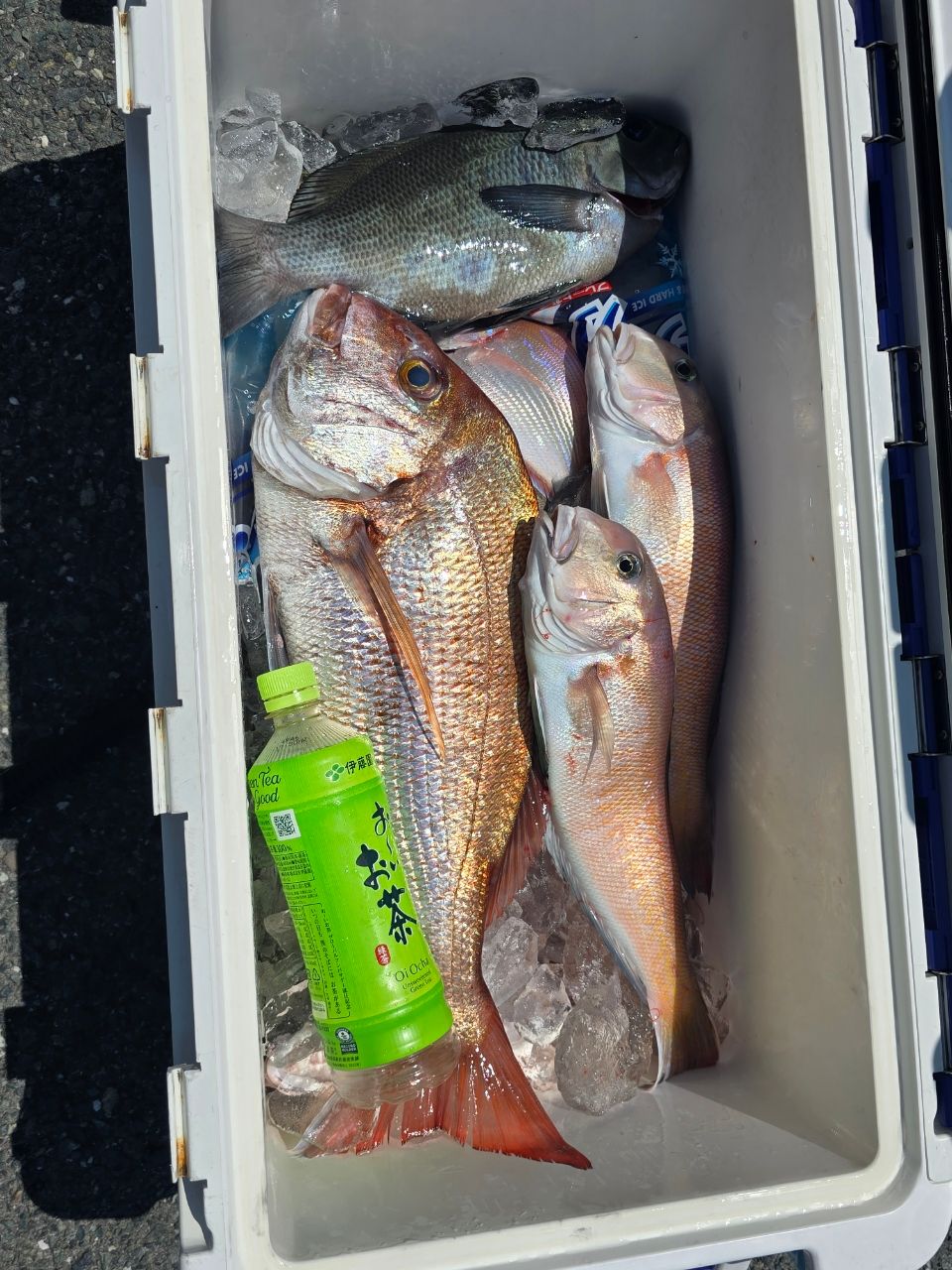 前半はデカアジ、真鯛とグレが釣れ後半はアマダイだった