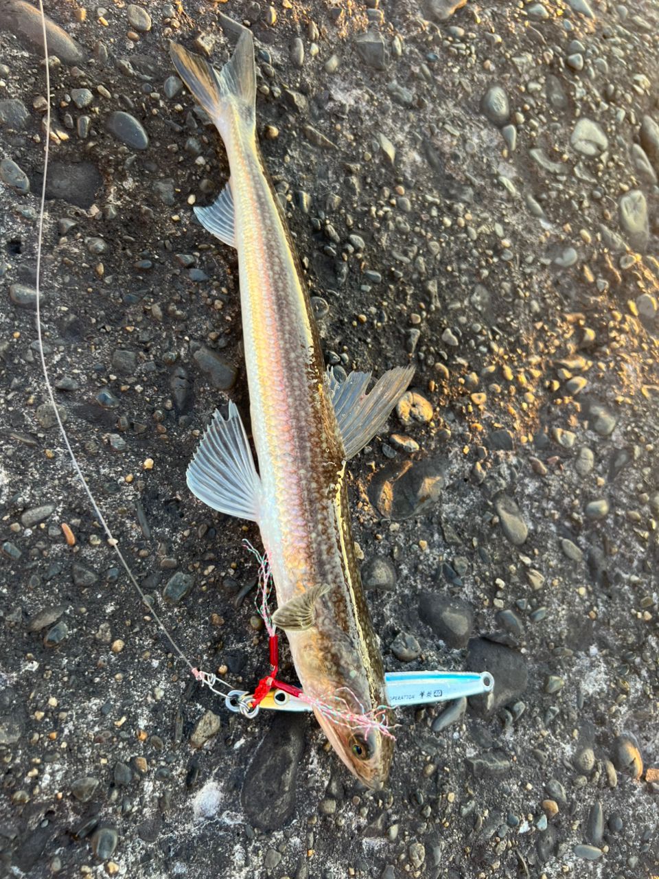 すべての個体そうでしたがかけてからほぼ引かずに釣れた後、陸に置いた瞬間暴れ狂いました。(;´д`)