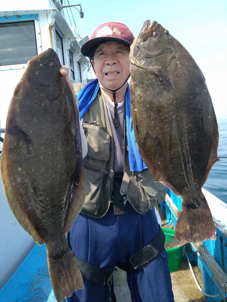 外川沖ヒラメ5〜10枚、大きさ0、4〜3、6㎏、水深14M、水温25℃、水色、澄み、外道にマダコ、カサゴ、カンパチ、交じリ、今日もポツポツ順調に釣れました。2番手の方は8枚が3名でした。平均に釣れてよかったです。バラシも多数ありまししたよ、オモリ80号使用。明日も出船致します。予約お待ちしています。出船確定日、24日、25日、26日、27日、29日、30日、予約お待ちしています。