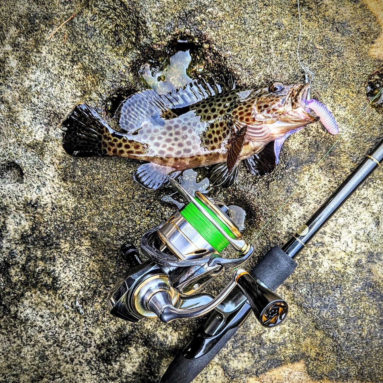 遠投した先はかなり深く、潮も早いのでライトタックルだと底取が大変でした笑