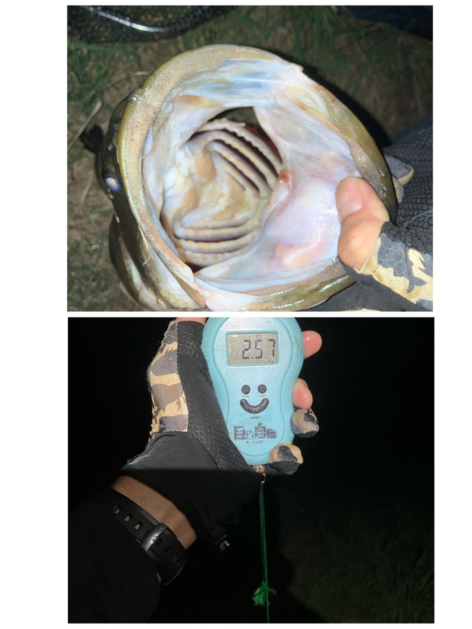 水揚げして先ずめっちゃデカい口が目に飛び込んでくる。あ、いったな。しかし南湖のバスは口でか詐欺がよくあるのでメジャーに乗せるまではわからない。
