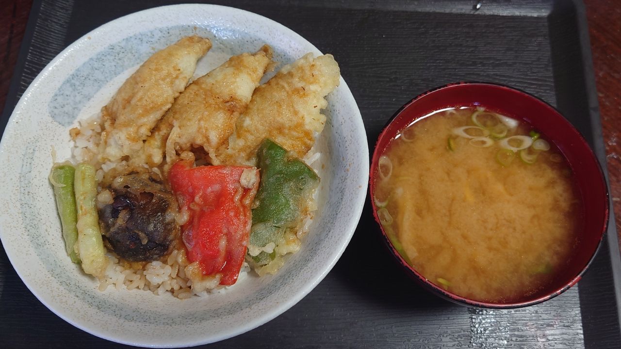 キビレを3枚におろして身は天丼で、中骨とあらは出汁を取り丼つゆと味噌汁を作ってみました😋