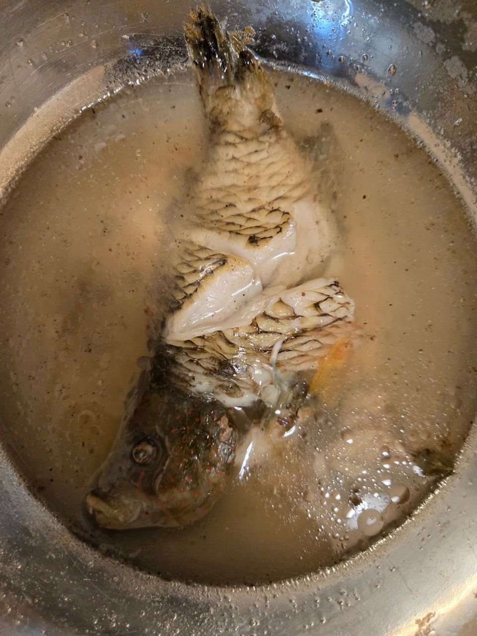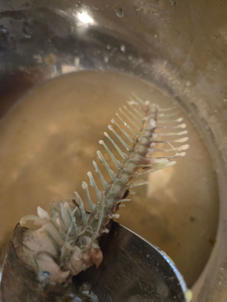 今日も ヒロシが、きた、沖縄の、郷土料理の、塩汁、シチューっていうらしいけど、ほんとに、おいしい。食べ終わって骨を見ると、なんと青い色がついてる。