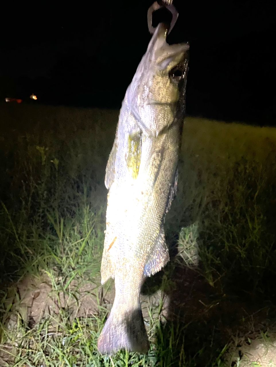 ルアーカラーをパールからチャートに替えたら、3匹目やっとシーバスきましたー🎣🎣🐟🙌
