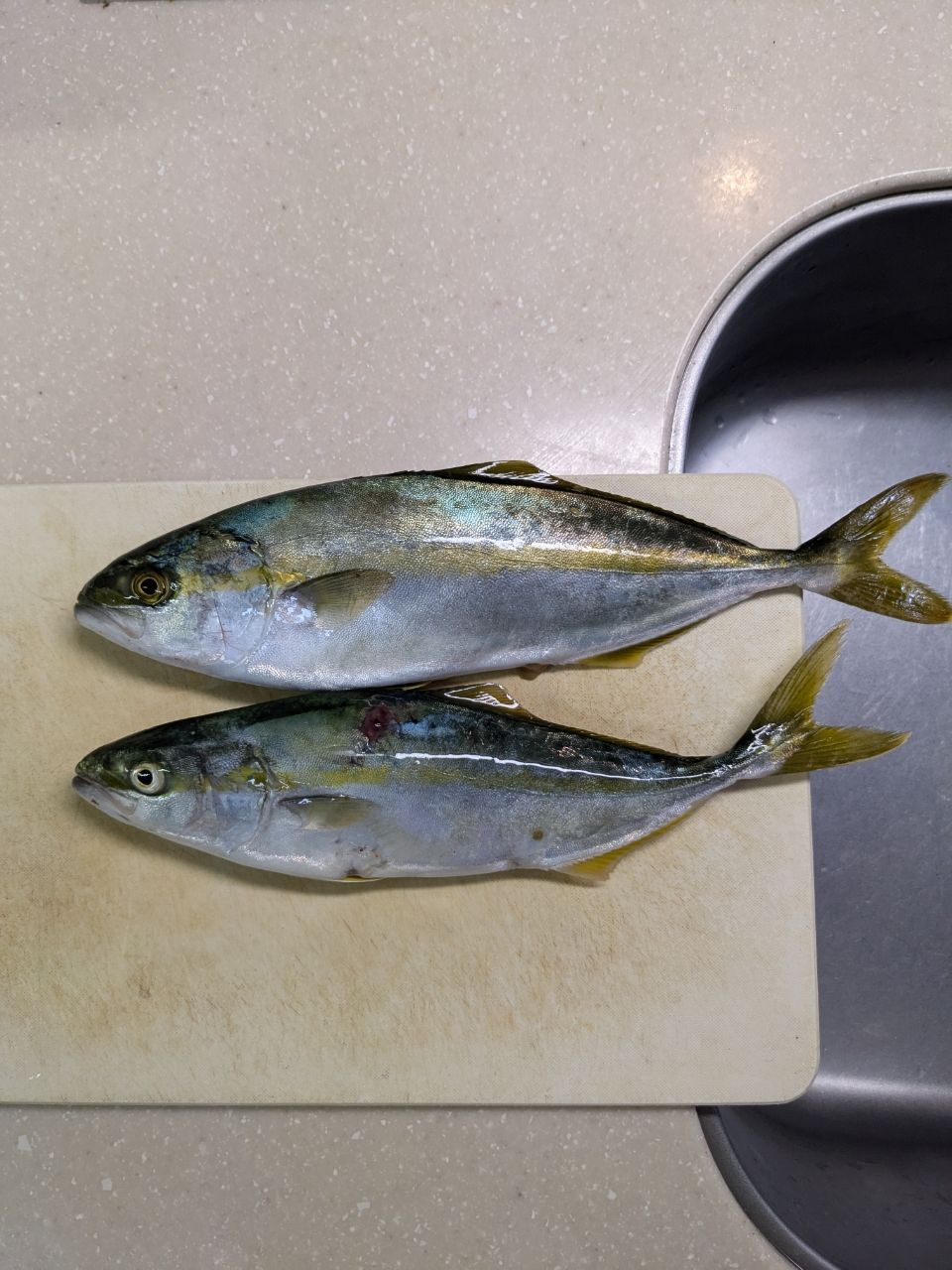 まだ青物さんたちがいるか様子を見に行ったところ、今日も遊んでもらえました〜😁生憎出血がひどかったためお持ち帰り😟ワカシには大きな魚に襲われたような傷もありました😣せっかくなのでよく観察してみると案外ヒラマサとブリの特徴が出てるもんだなぁと思いました🐟これからは見分けられるかも😄