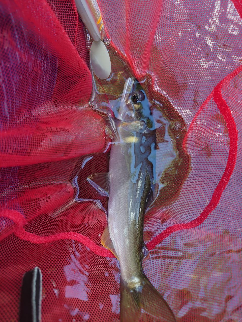 その下流のナワバリもイマイチだったが、少し浮いたタイミングでヒット→22cm