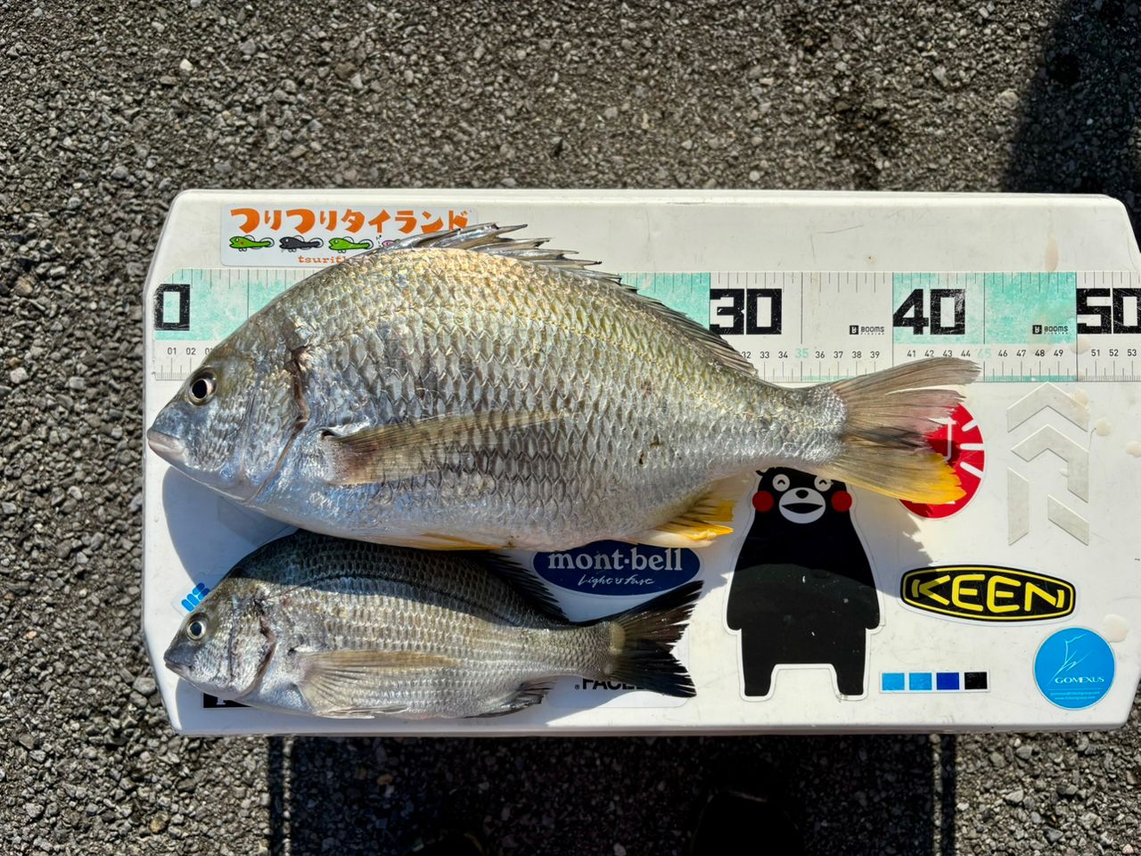 下げのタイミングで当たりがポツポツ。台風影響でかなり水は濁ってます💦微妙な当たりに合わせたらキビレ(44センチ)体高もありタイ🇹🇭にいたナンヨウチヌみたい🤩