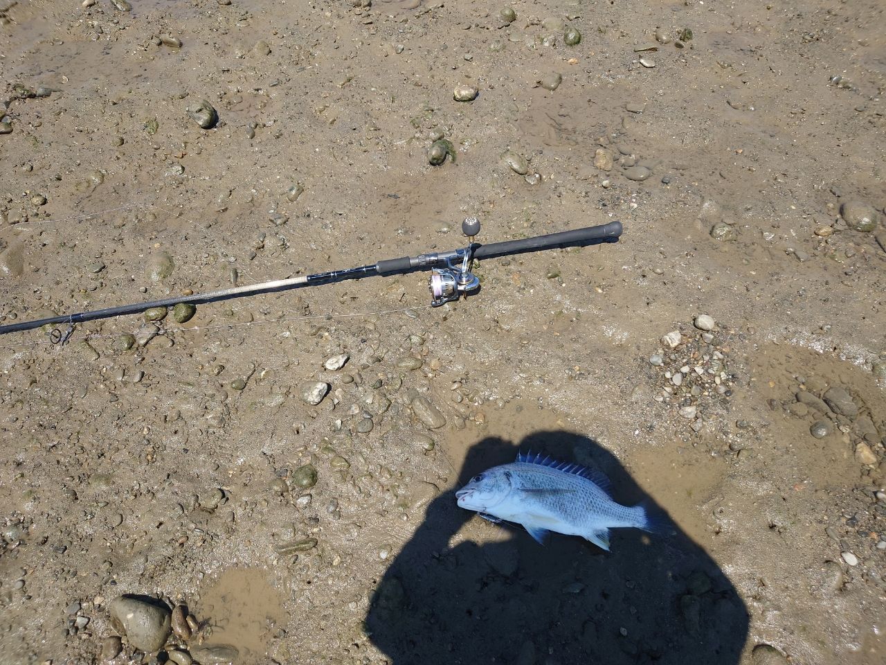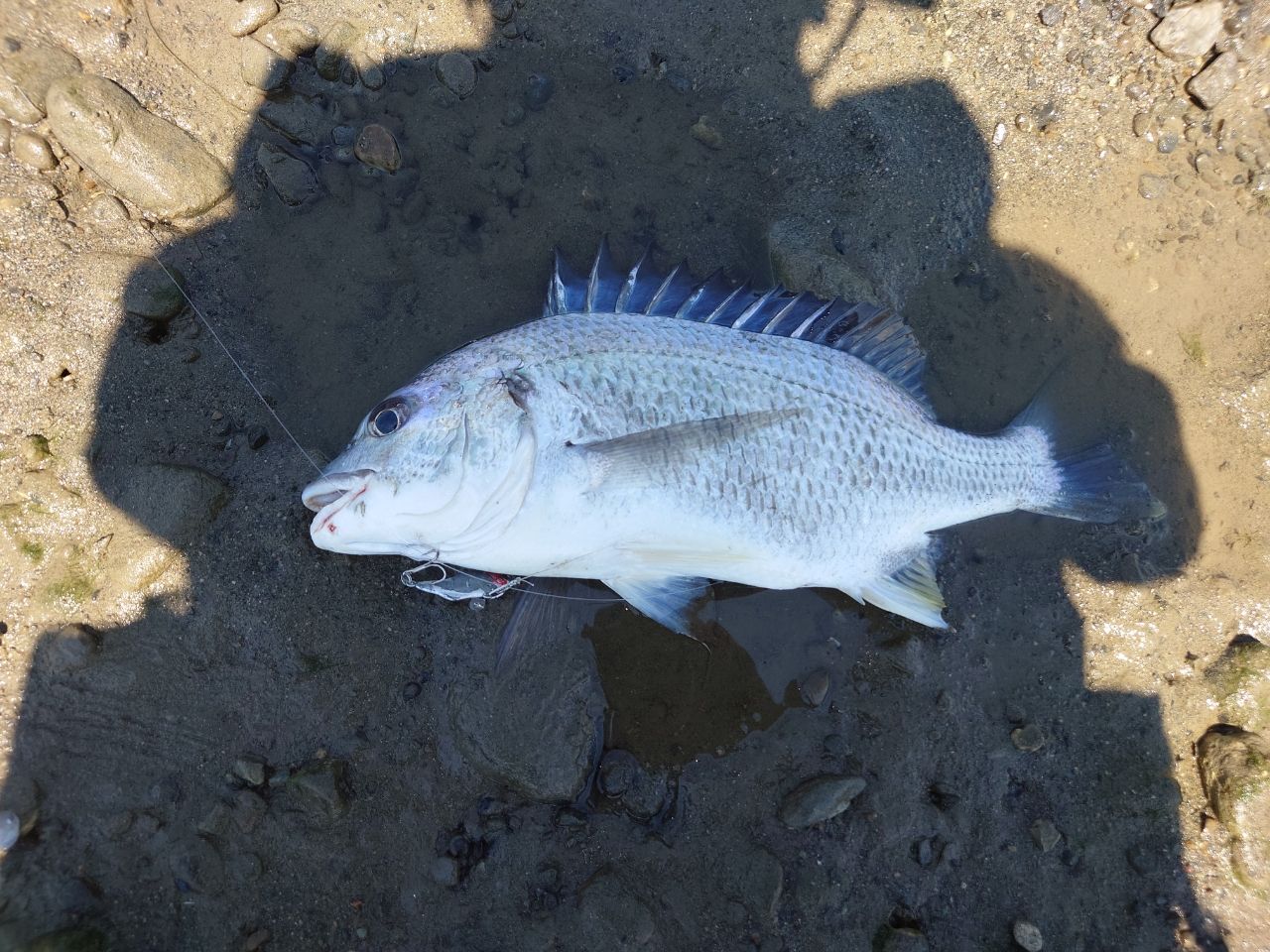 釣り始め早々シーバスのなかなかのサイズバラし、その後ルアーを変えてキビレが着てくれた。