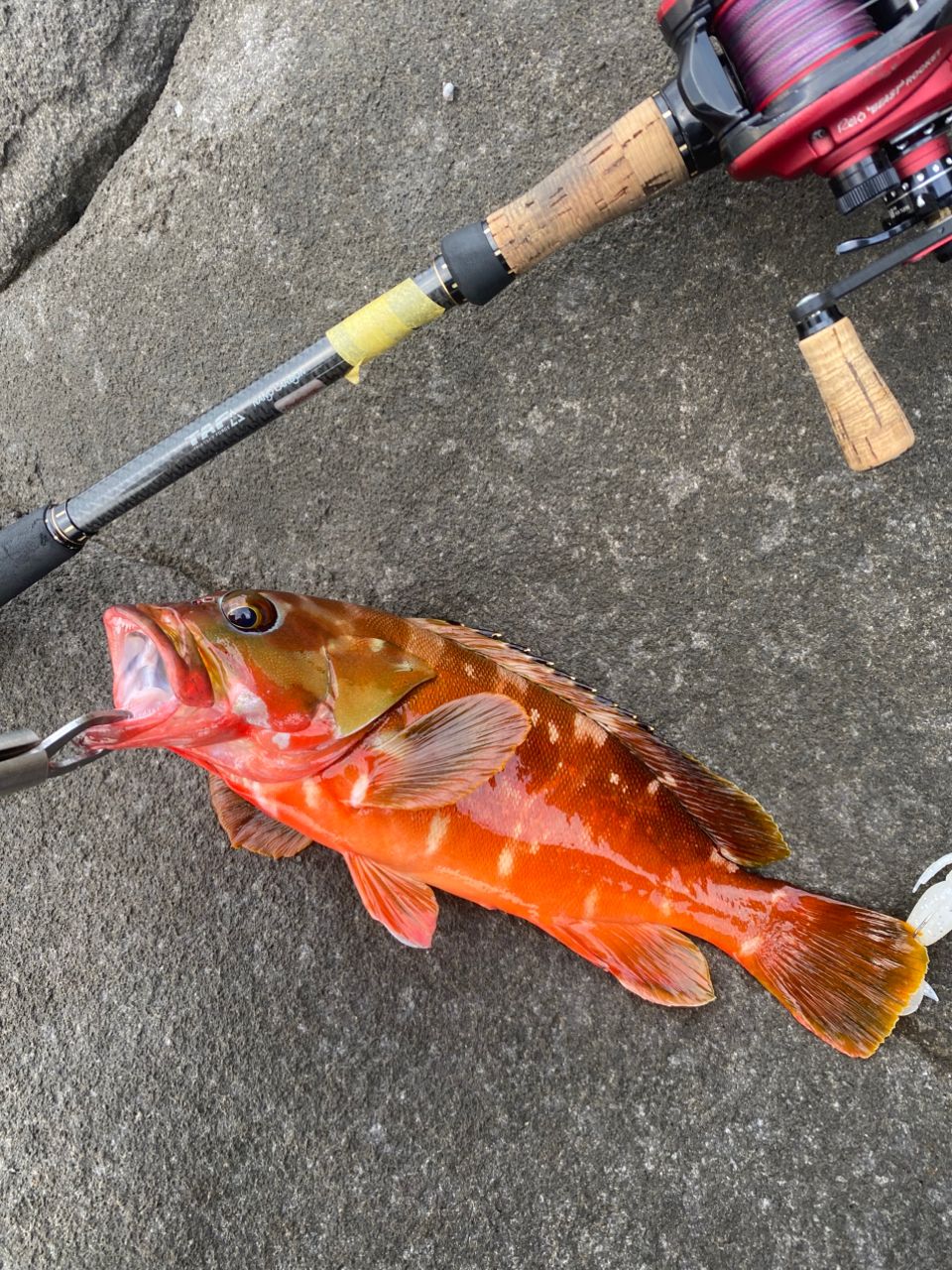 夜中〜朝マヅメとバラシまくりで萎えてたところ明るくなって根をピン打ちしたらノミちゃんGET👍