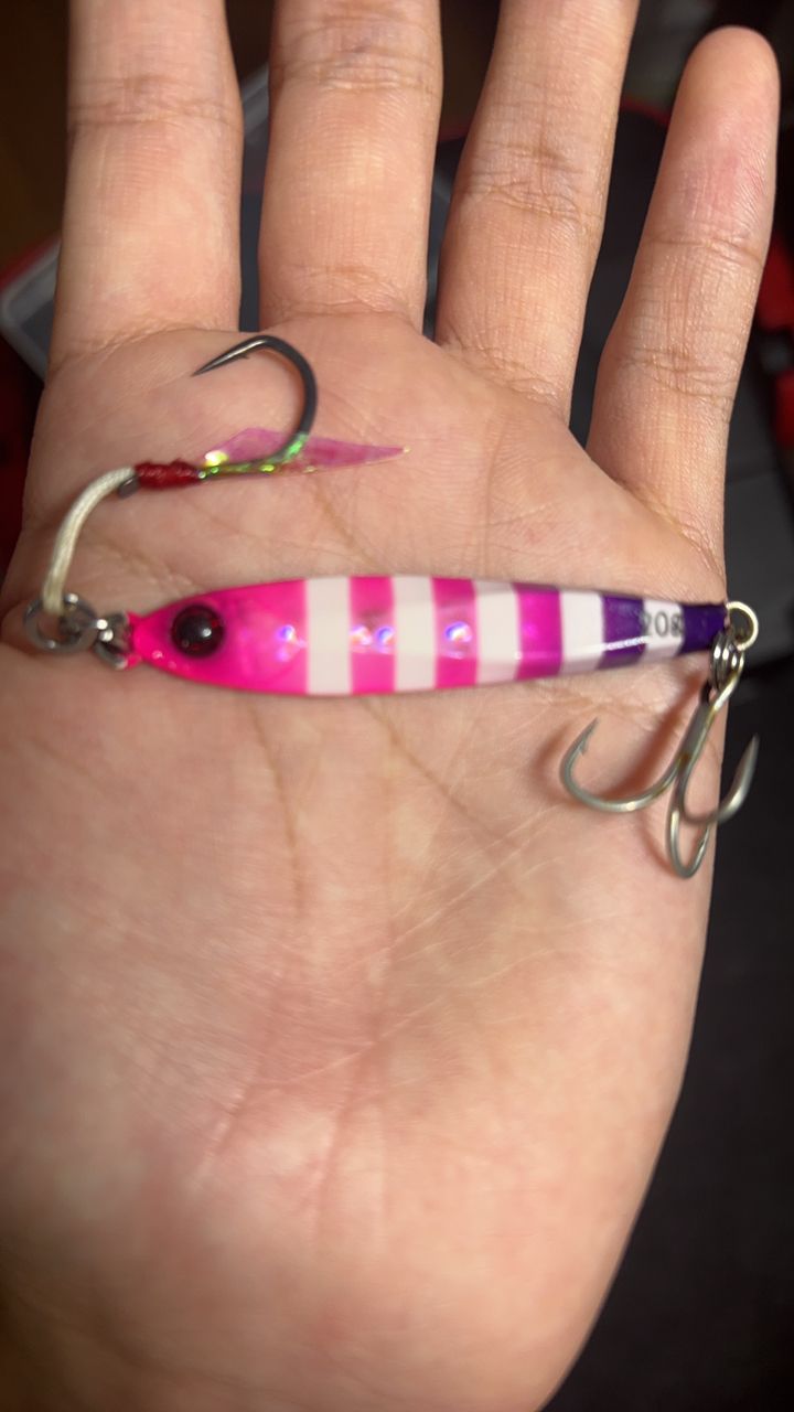 今夜はタチウオ狙いでテンヤを遠投!周りが釣れているのに全く釣れない、、と思ったら根掛かり!引き上げるとまさかのビックバッカーのルアー!!正直タチウオよりも嬉しいので良しとします、、