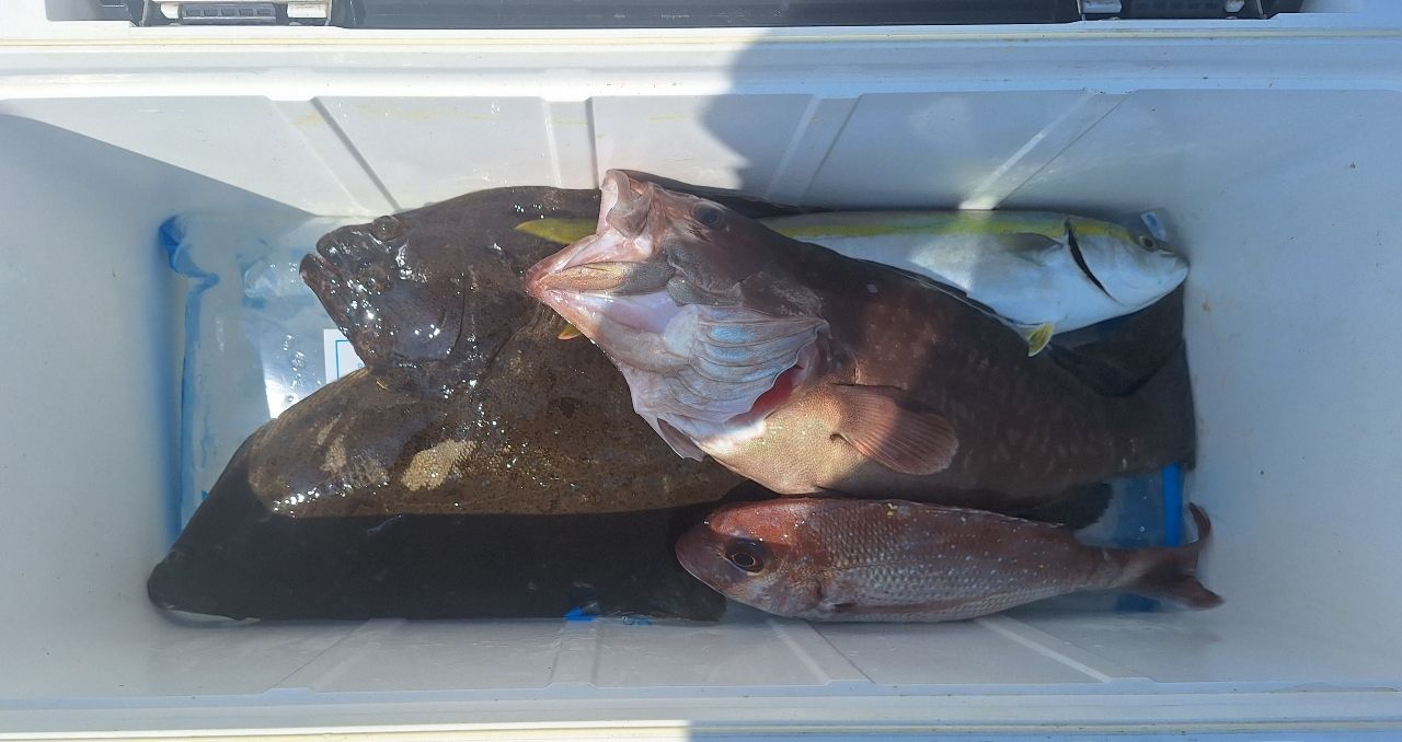 マダイ1 マハタ1 ヒラメ2 イナダ1 ササノハベラ2(リリース) と五目達成👍️