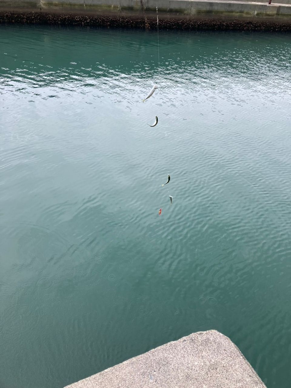 サビキで投げてみると⋯投げる度に毎回3〜5匹付いてくる!小サバが!!最初は良かったけど、段々外すのが面倒になってきたので納竿。