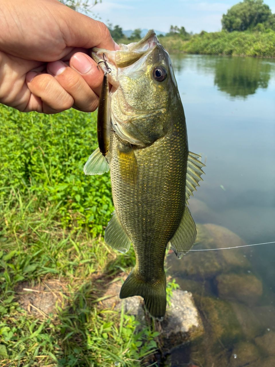 ミノーの反応が良く、沖のウィードに絡めながら着いて暫くはトゥイッチしてるとドンと当たりが出ました!