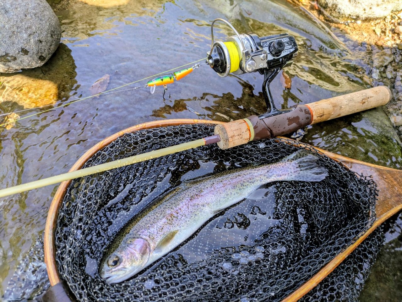 ミノーで5匹✨️虹鱒ちゃん遊んでくれました☺️ ラパラのフィッピースピン、使い易い(^^)繊細な釣りに最適でした!🎣