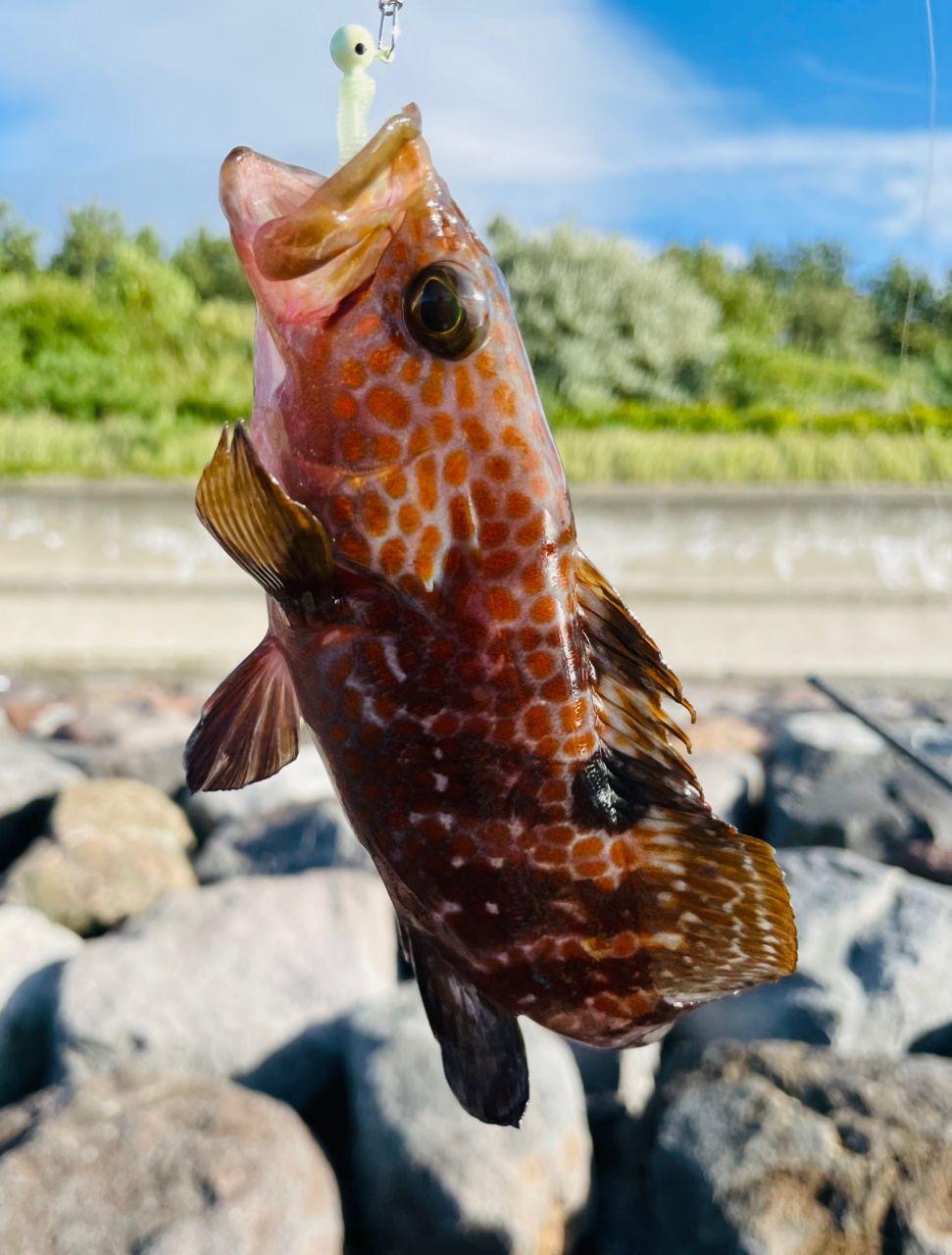 この辺りの浅瀬で釣れる根魚、キジハタ・カサゴ・ムラソイの全3魚種を1時間で達成🎉