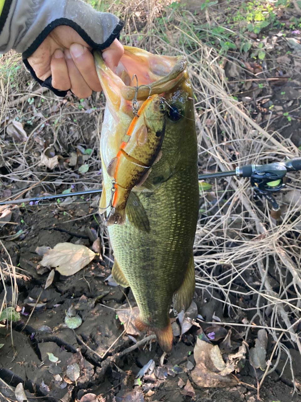 先月から良いサイズはひたすらバラしまくって小バスばっかりだったけど、今日はガツンと食ってくれました🐟💨💨💨