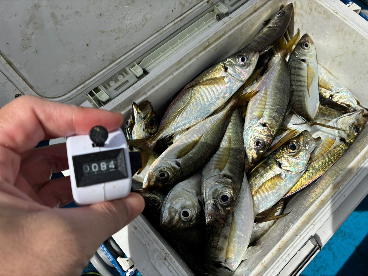 ここ最近は釣果が安定しておらず、どうなるか心配でしたが、中アジ主体で小アジがほとんど混ざらないコンディションで終わってみれば良型揃いの84匹でした✌️