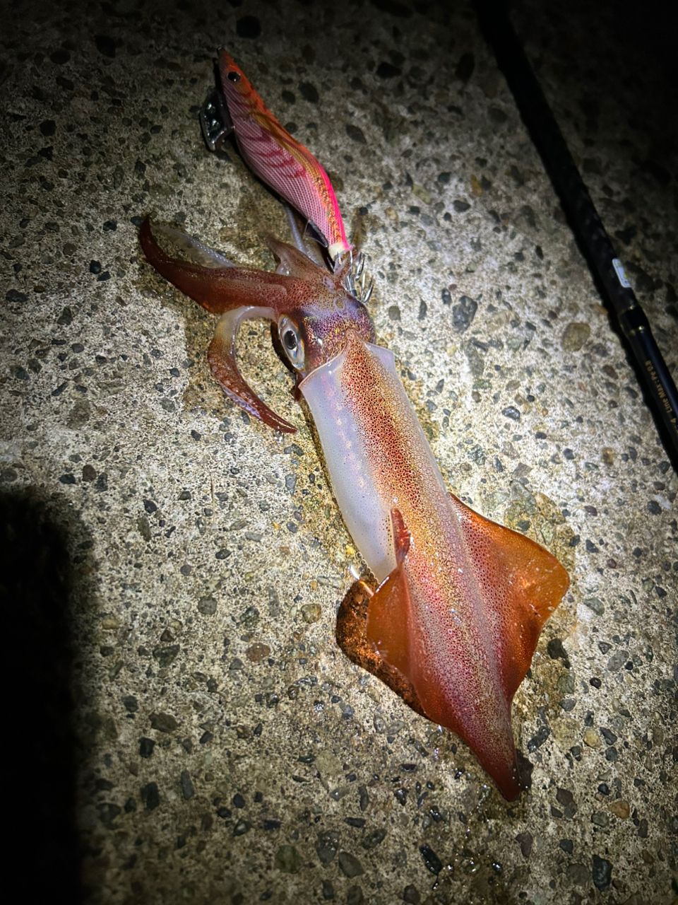 最後にサプライズゲストでヤリイカキャッチ⭐️何気に初の釣果でしたー♪ヤリイカ合わせてでしたけど、つ抜けも完了⭐️