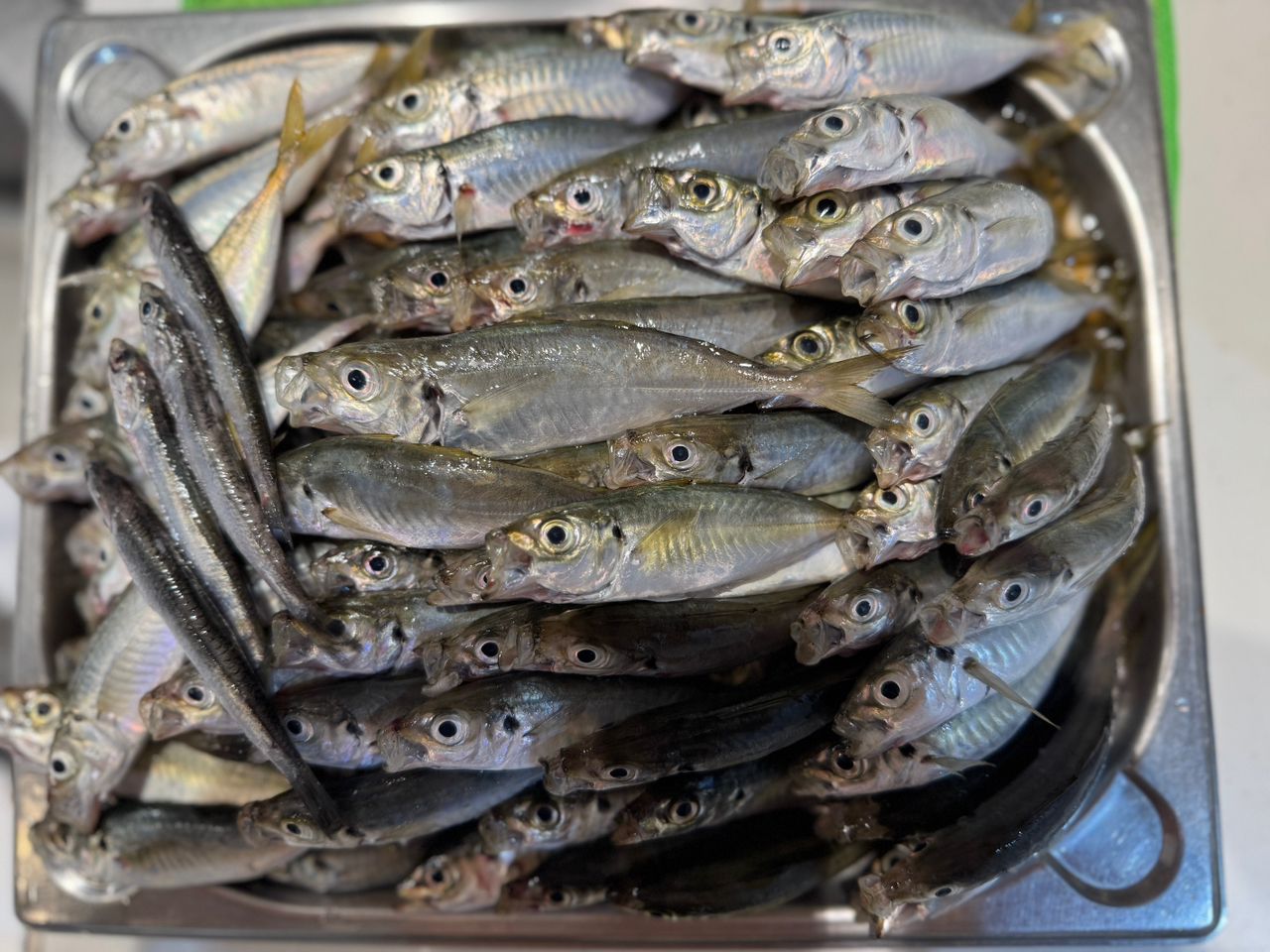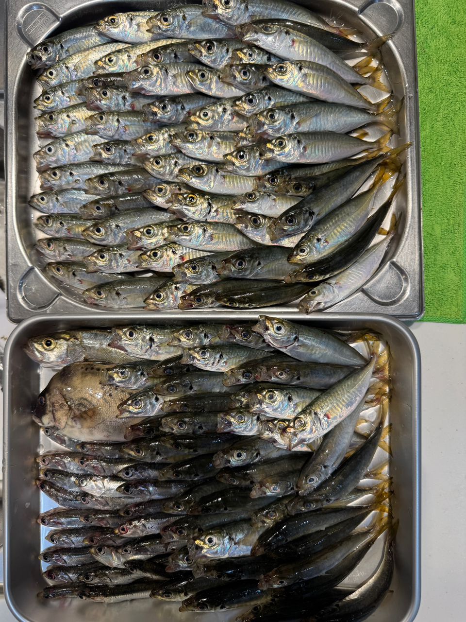 アジ175匹、カタクチ45匹、胡椒ダイ1、セイゴ1。サッパは10くらいリリースしました。