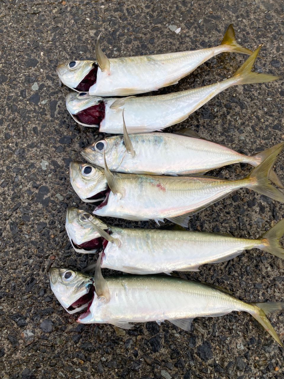 ジグサビキで釣れたアジのうち2匹はマルアジでした😅