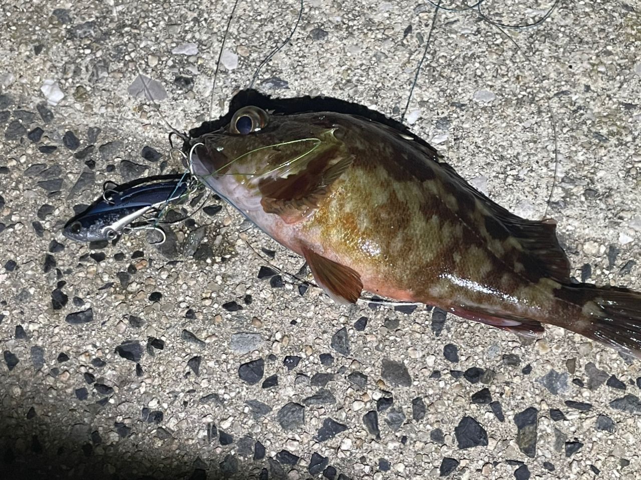 糸が絡んでたからルアーを海の中でそのままにしてたら、なんか食いついてた🙈